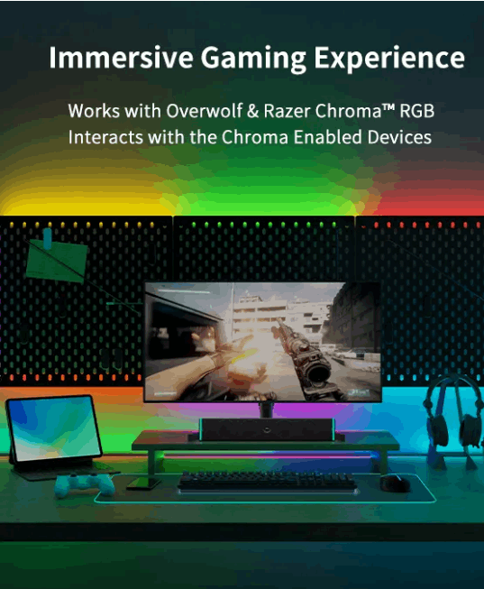 - IMMERSIVE GAME EXPERIENCE: The LED Light Strip Pro is readily compatible with popular gaming platforms such as Razer Chroma™ RGB* and Overworlf. Connect the LED Strip Pro with Razer peripherals and see your lights react to game* events in real-time!